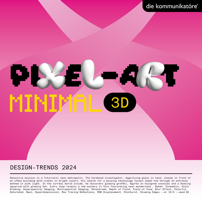 Bitte was? Ja, genau. Das ist der Prompt, um mit Hilfe der Bildgenerator-KI midjourney die aktuellen und die kommenden Trends darzustellen. Zumindest ist das das, worauf es ankommt - der Kern der Design-Trends 2024.
